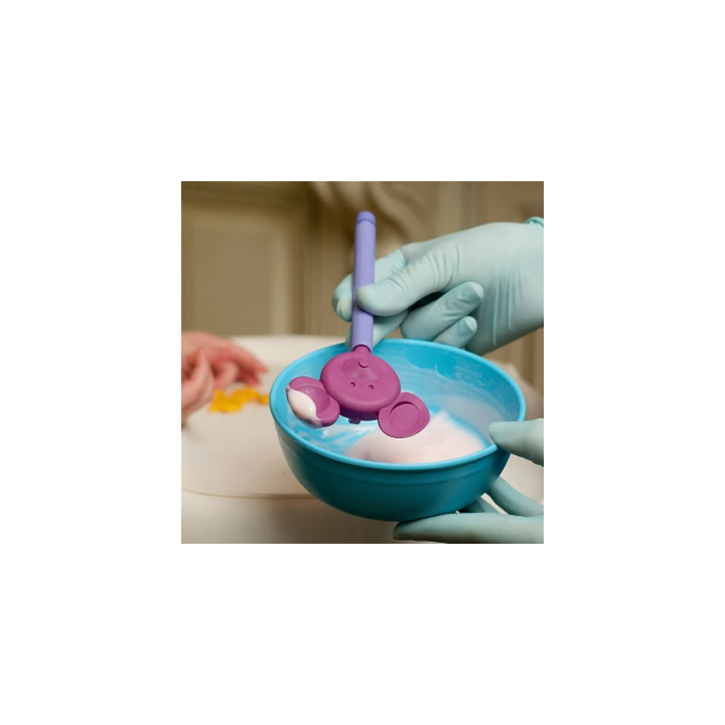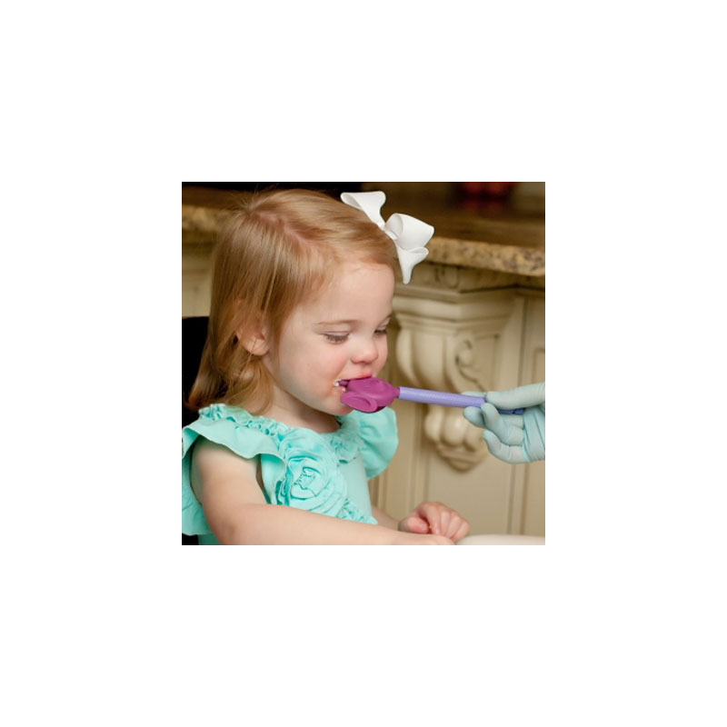 Both tips were designed with a variety of textures to generate different sensations within the oral cavity and around the lips and face. The reverse sides have many additional textures and “pockets” for the tongue to explore. Use the ears to scoop foods on either a smooth or textured surface. The backs also have bite blocks to work on jaw grading and stability.